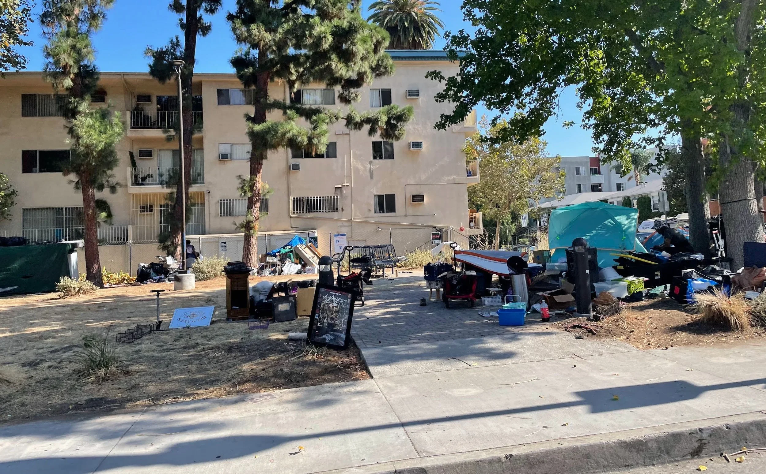 Enter a MyLA311 service request under “Homeless Encampment” and include the location, vehicle information, and a photo.